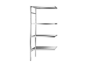 Edelstahl-Steckregal, 4 gelochte Fachböden, Fachbodenbreite x Tiefe 640 x 440 mm, Anbauregal. Anlieferung = zerlegt. Regalart = Anbauregal. Regalhöhe =…