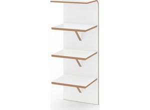 Anlehnregal, Breite 310 mm, Modell SCHUH, weiß. Anlieferung = montiert. Höhe = 850 mm. Breite = 310 mm. Tiefe = 250 mm. Anzahl Fachböden = 3 Stück.…