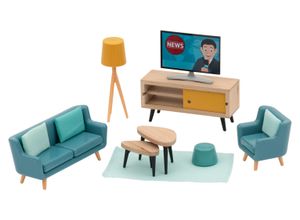 Aus Echtholz und robustem Kunststoff Liebevoll gestaltete Miniaturmöbel mit niedlicher Textilausstattung Fördert Fantasie und Rollenspielvermögen…