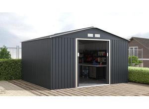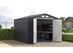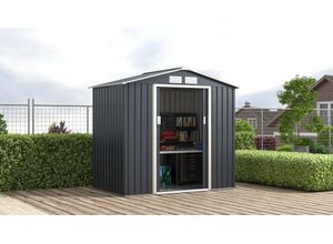 Diese ca. 86x100x63,5 cm (BxHxT) große Ambia Garden Kleingarage aus Metall in Anthrazit bietet Ihnen eine kompakte und zuverlässige Aufbewahrungslösung für…