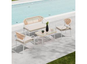 Ambia Garden Gartenset , in der Farbe Creme, Klar, Natur, Weiß , aus dem Material Metall, Kunststoff, Glas, Textil Der Artikel ist ein 4-teiligs Set. Die…