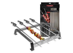 Grillspieße mit Halterung Die Grillspieße mit Halterung aus Edelstahl sind das perfekte Zubehör für alle Grillmeister, die gerne Schaschlik, Steckerlfisch…