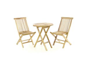 Exclusives Gartenset geeignet für kleine Balkone, Terrassen und einfach im Garten. Es besteht aus 2 zusammenklappbaren Holz-Gartenstühlen aus Teak (äußerst…