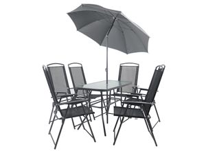Gartenstühle: - Maße ca. H. 79 x B. 45 x T. 46 cm - Set besteht aus 6 Stühlen - Sitzfläche und Rückenlehne aus bequemer Textilene - Stuhl kann platzsparend…