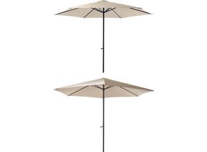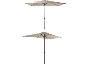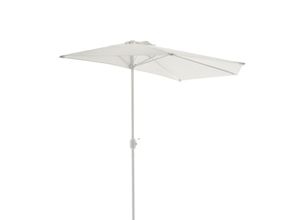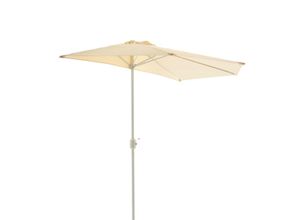 Halbrunder cremefarbener Sonnenschirm, ideal für kleine Balkone und Terrassen. Der halbrunde Schirm lässt sich ganz einfach an der Hauswand ausrichten und…