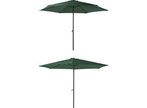 Der grüne / dunkelgrüne Schirm hat einen Durchmesser von fast 3m. Der Stamm und die 6 Rippen sind aus Stahl. Der Strandschirm ist mit einer Kurbel…