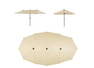 Der creme-farbene / beige Schirm hat einen Durchmesser von fast 3m. Der Stamm und die 6 Rippen sind aus Stahl. Der Strandschirm ist mit einer Kurbel…