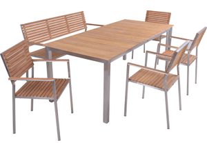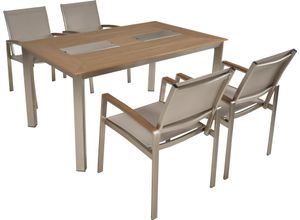 Die Tischgruppe DALLAS/DENVER Set 05 ist eine erstklassige Wahl für stilvolle Outdoor-Essbereiche. Hergestellt aus hochwertigem, gebürstetem Edelstahl 304…