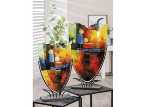 Die Glas Vase Veronique erhält ihre Standfestigkeit durch einen Metallständer. Sie ist in einem innovativen Design in bunter Farbkombination gefertigt -…
