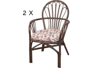Moderner Rattansessel im 2er-Set komplett aus Rattanrohr, handgeflochten. Armlehnen und Rückenlehne mit schöner Verzierung gearbeitet. Die pflegeleichte…