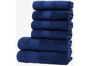 Set-Bestandteile: Anzahl Teile: 6 tlg., Optik/Stil: Farbbezeichnung: Blau, Optik: unifarben, Details: Aufhängung: Kordel, Material: Materialart: Frottier,…