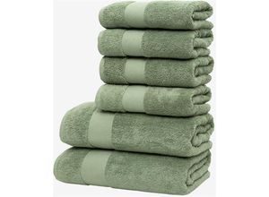 Set-Bestandteile: Anzahl Teile: 6 tlg., Optik/Stil: Farbbezeichnung: Grün, Optik: unifarben, Details: Aufhängung: Kordel, Material: Materialart: Frottier,…