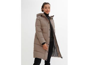 bonprix Damen wasserabweisender Daunenmantel mit bedrucktem Innenfutter in braun: Dieser PREMIUM Outdoormantel hat durch die besondere Wattierung aus Daune…