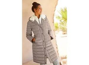 Mantel Herrlich leicht und schön warm, mit kuscheligem Kapuzenfutter aus Pelz-Imitat und Westeneinsatz. Dezent glänzende Ware mit figurschmeichelnder…