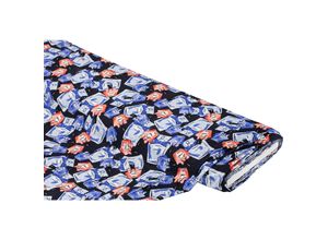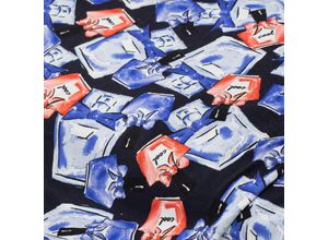 Viskose-Jersey "Parfüm", Farbe: schwarz/rot/blau, bi-elastisch, Motivgröße Parfüm groß: 7 x 5 cm, Breite: 140 cm, Gewicht: ca. 170 g/m². Material: 95 %…