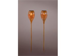 bonprix Solar Gartenfackel (2-tlg. Set) in beige: Dieses Solar Gartenfackel 2er Pack bringt ein warmes, tropisches Flair in deinen Garten. Die Fackeln im…