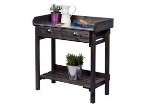Pflanztisch mit Schubladen, schwarz Farbe: Schwarz Material: Fichten-Massivholz, lasiert Arbeitsfläche Metall, verzinkt Maße: B x H x T ca. 79 x 90 x 39 cm…