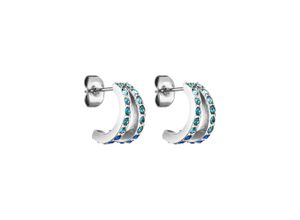 Bogenförmige Ohrstecker verziert mit Schmucksteinen in blauem Farbverlauf. Größe Länge: 12 mm Material Schmucksteine: Aquamarin &…