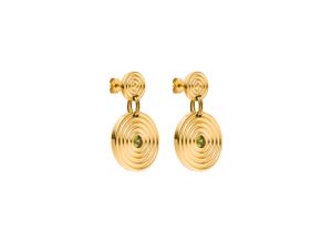 Ohrringe mit rundem Design aus zwei Kreisen. Ein kleiner Zierstein in funkelndem Grün schmückt den Anhänger. Passt perfekt zu sommerlichen Styles und…