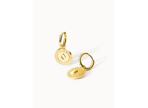 Gemusterter Coin mit Ausstanzung an kleinen Creolen. Material Gold: Edelstahl 18K vergoldet Silber: Edelstahl Roségold: Edelstahl 18K…