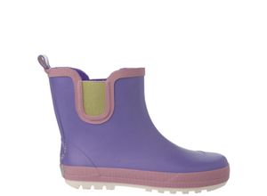 Lila Gummistiefel mit Farbakzenten in Mauve. Kurzer Schaft mit elastischen Einsätzen seitlich und kleiner Schlaufe hinten für einfaches An- und Ausziehen.…