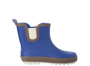 Blaue Gummistiefel mit Farbakzenten in Braun. Kurzer Schaft mit elastischen Einsätzen seitlich und kleiner Schlaufe hinten für einfaches An- und Ausziehen.…
