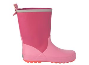 Wetterfeste Regenstiefel in Pink und Rosa mit reflektierenden Details. Lasche am hohen Schaft zum einfachen Anziehen, mit kleinem Herz-Anhänger.…