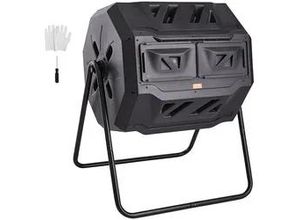 VEVOR Komposttrommel 200 L, Tumbling-Komposter Outdoor mit 2 Schiebetüren & Belüftungssystem & Doppelkammern, Kompostbehälter aus PP & Kohlenstoffstahl für…
