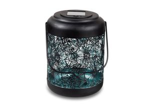 Die Laterne 13x18 cm mit Solarlicht in schwarz-aqua und filigranem Durchbruch verziert ist aus Metall. Setzen Sie in Ihrem Garten, auf dem Balkon oder auf…
