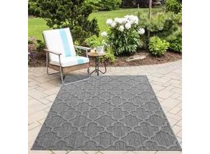 Dieser rechteckige Outdoorteppich (B x L: ca. 200 x 290 cm) in Grau und Blau setzt Ihrem Bereich für lauschige Auszeiten außerhalb des Hauses gewebt die…