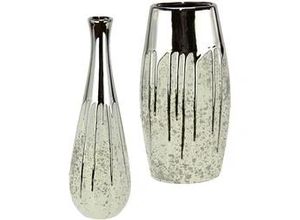 Diese Keramikvase ist mit strukturierter, glänzender und matter Oberfläche in weißer und silbernen Farbe besonderes Schmuckstück. Diese Dekovase setzt…