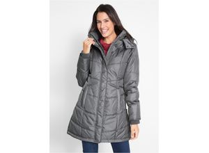 bonprix Damen Long-Steppjacke, wattiert mit Kragen und Kapuze in grau: Diese Steppjacke mit abnehmbarer Kapuze, seitlichen Eingrifftaschen, Reißverschluss…
